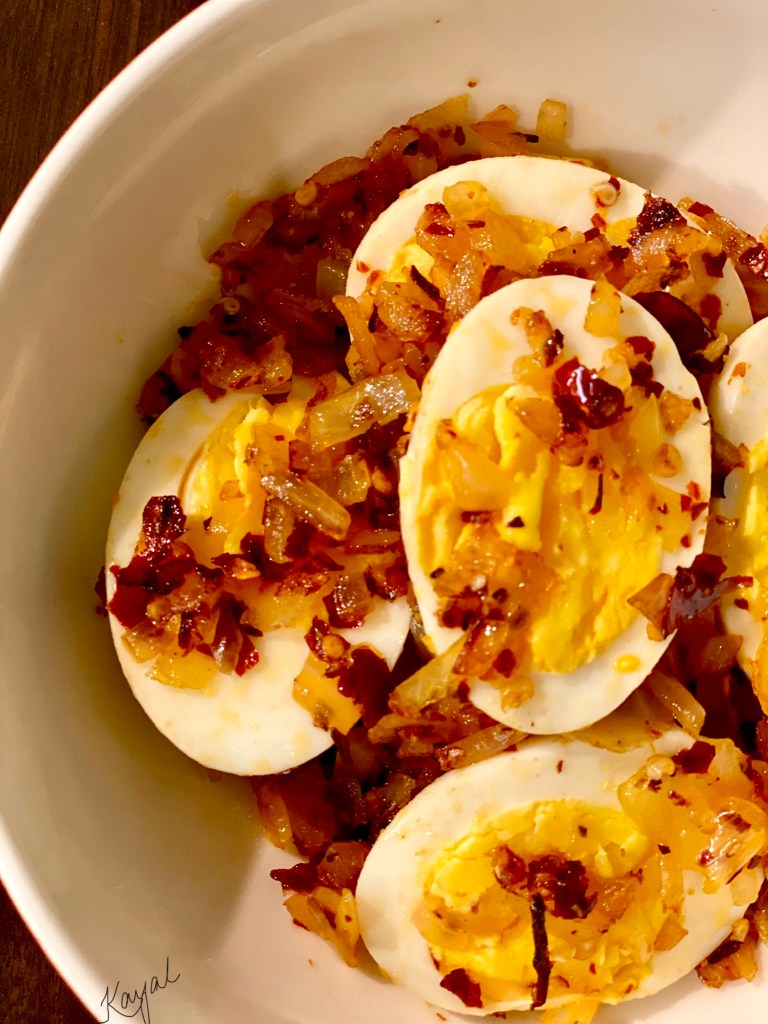 Egg fry is an easy recipe that can be done under 30 mins. Eggs are full of protein. I usually make this as a quick fix during lazy days. I cook some Vadicha Saadham (Steamed Rice) and Egg Fry and it tastes awesome. Also you can have this as a side dish for Sambar or Rasam rice.