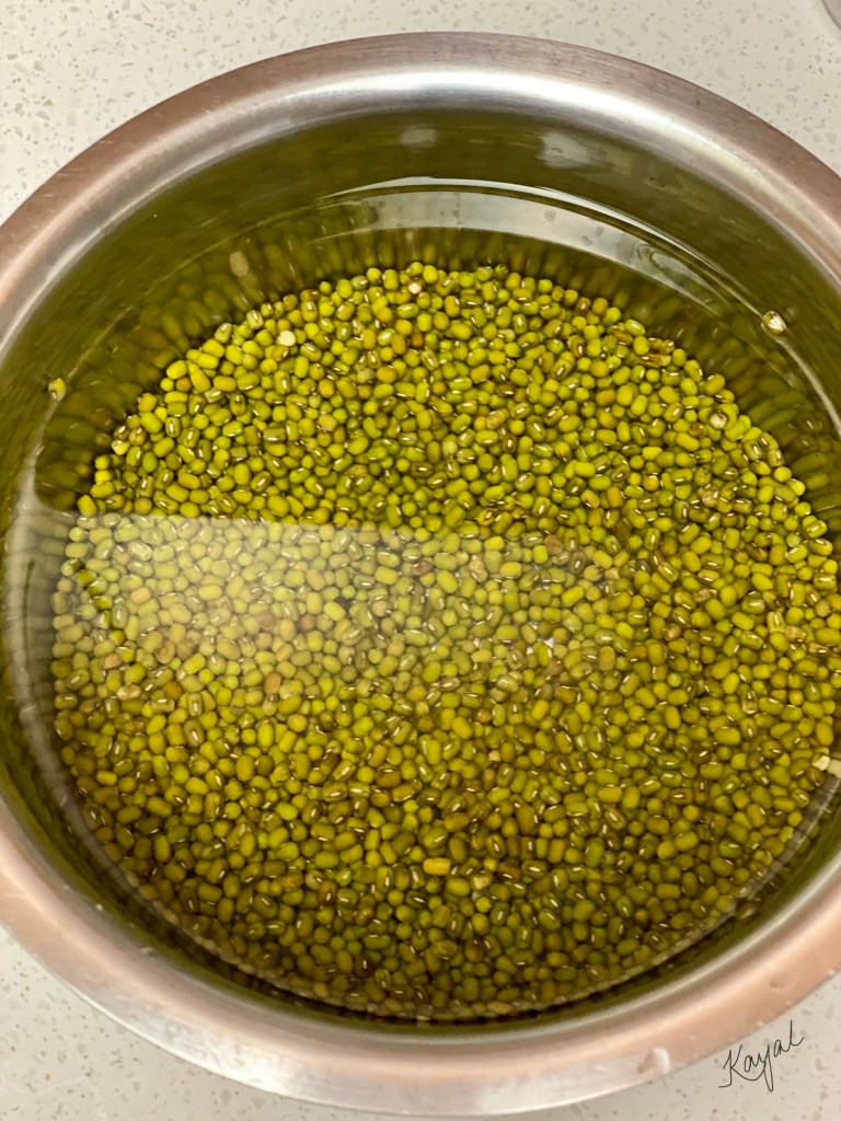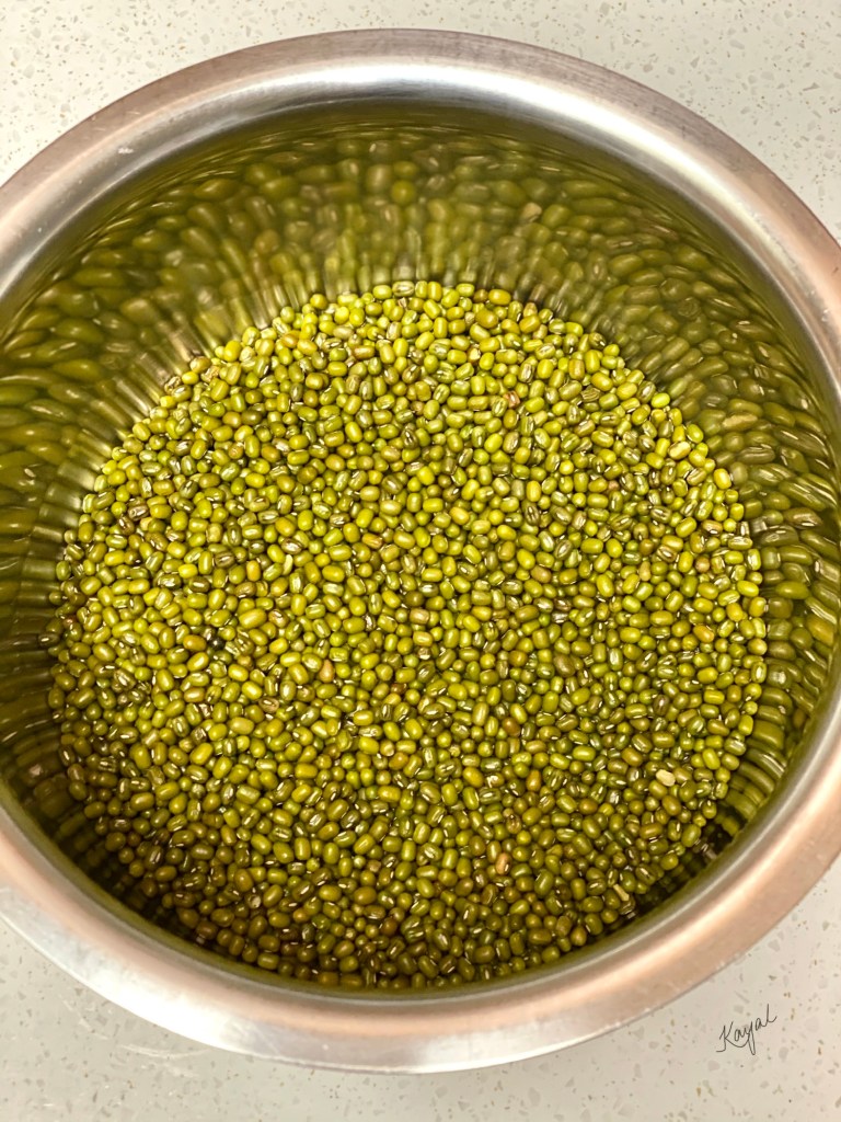 - Soak 2 cups of pachai payaru / green gram dal with water and soak it overnight.