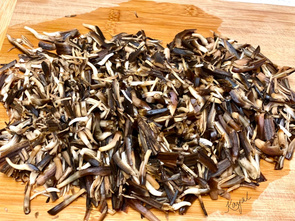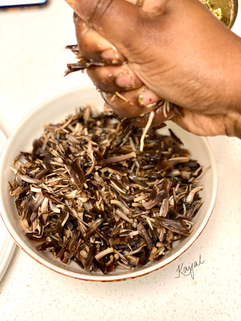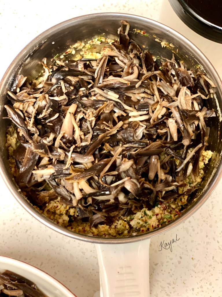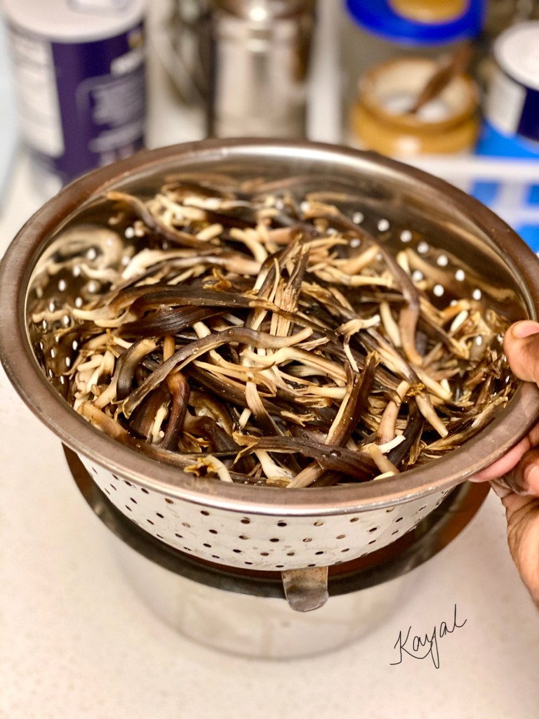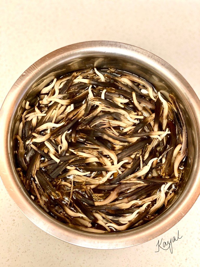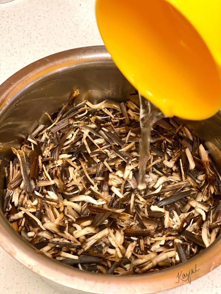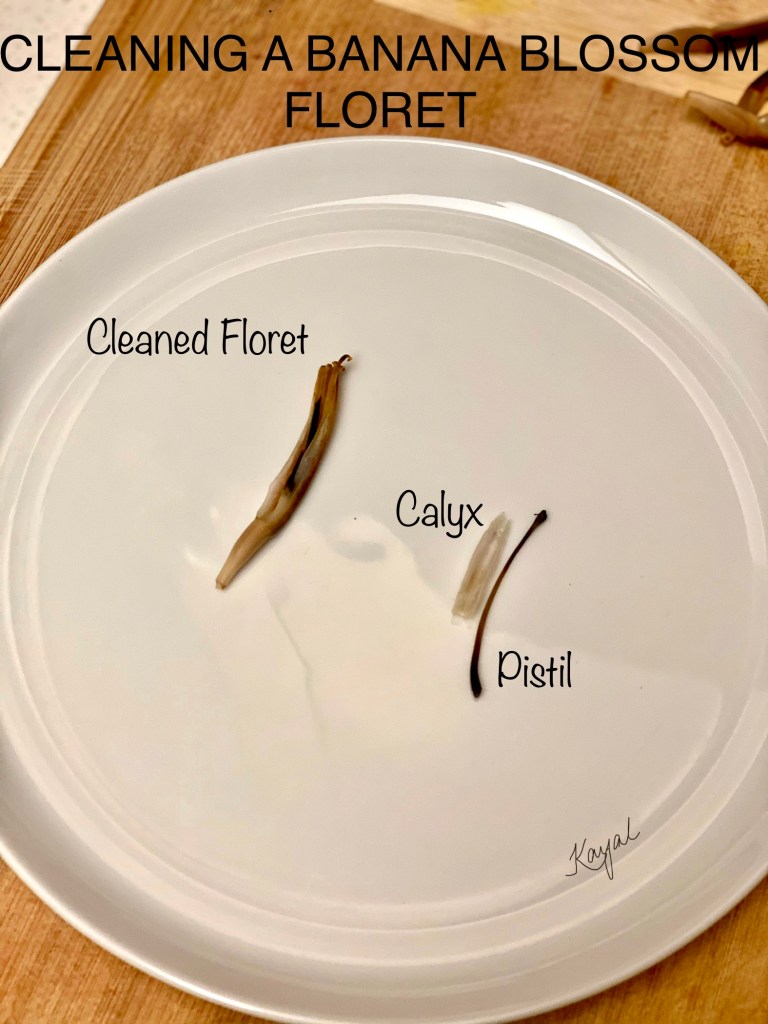 Check the below link for a detailed description on cleaning Vazhaipoo. Refer “How to clean Vazhaipoo / Banana Blossom” section in my Vazhaipoo Kuzhambu recipe for detailed explanation about the cleaning process. https://kayalscookbookstories.wordpress.com/2020/06/11/vazhaipoo-kuzhambu/