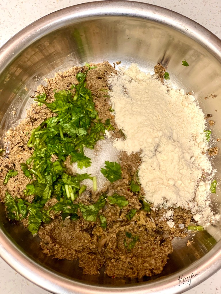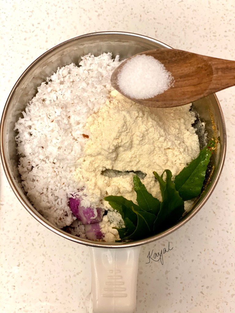 - Add enough roasted gram powder (pottu kadalai powder). This helps in binding ingredients together.