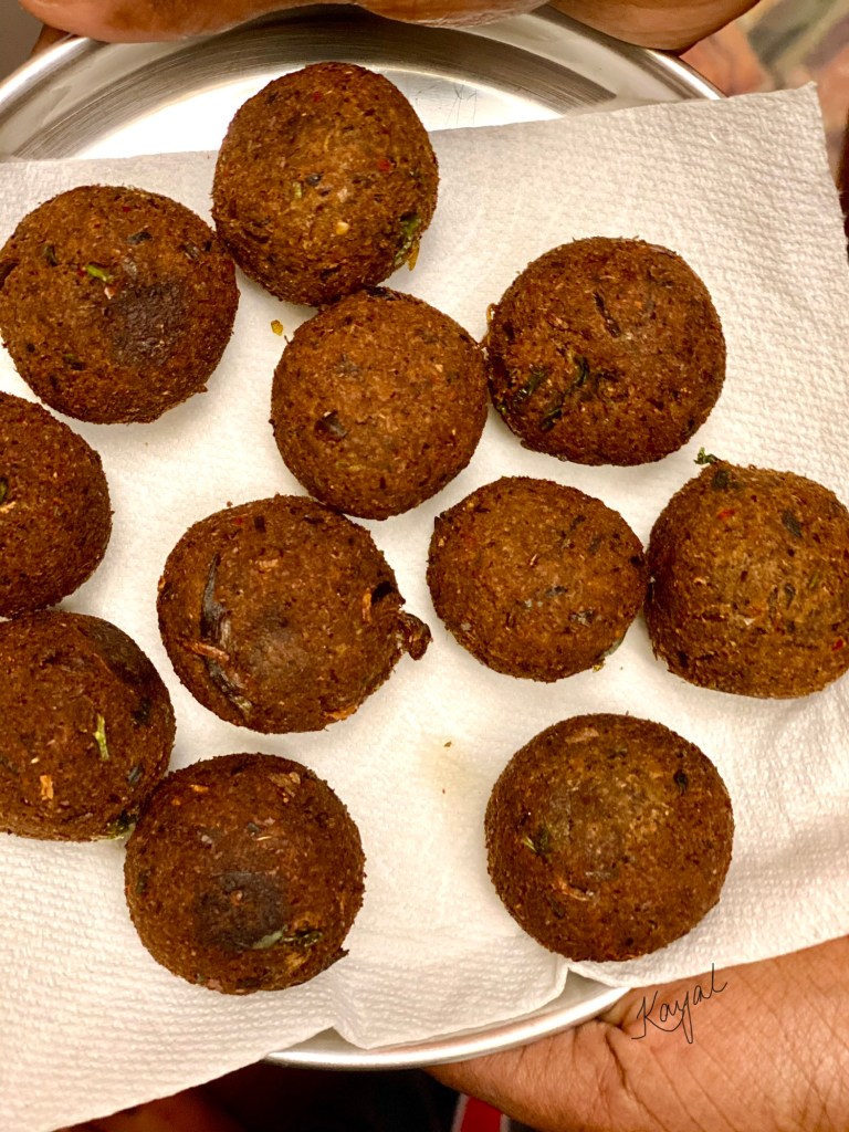 - Make small balls. I made 17 balls for this quantity of vazhaipoo.