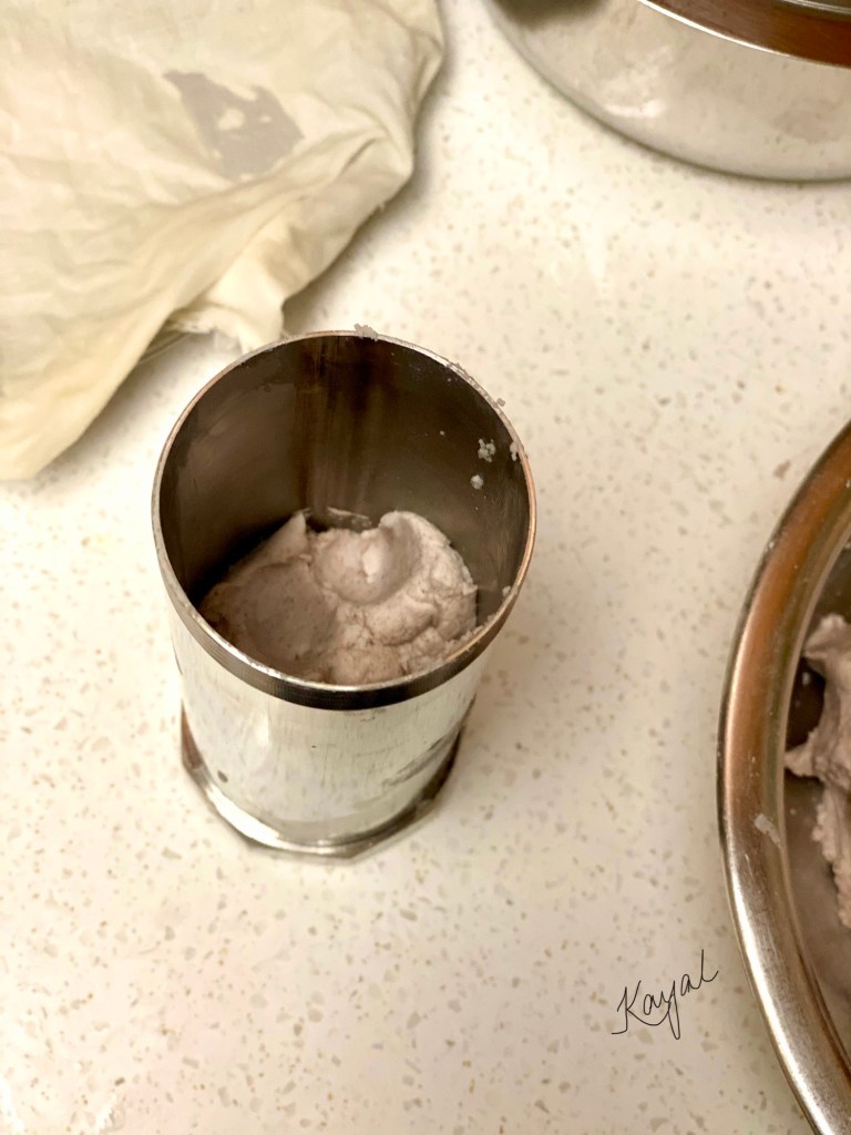 - If you are using mixie to grind the rice, add it in small quantities and make sure to sieve it twice. The flour should be very fine. Only then it will pass through the idiyappam mould holes and result in a perfect idiyappam.