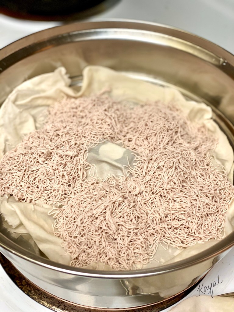 - Strain it in a colander and let it dry for sometime. About 2 hours.