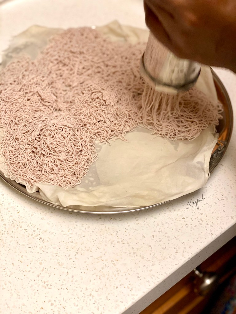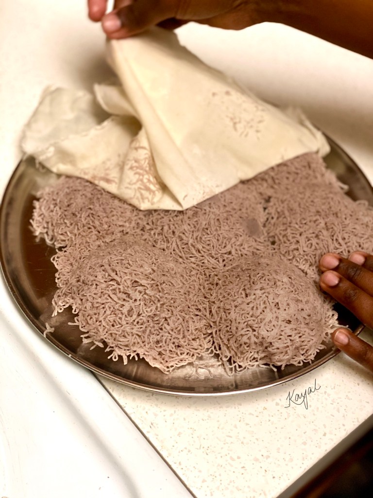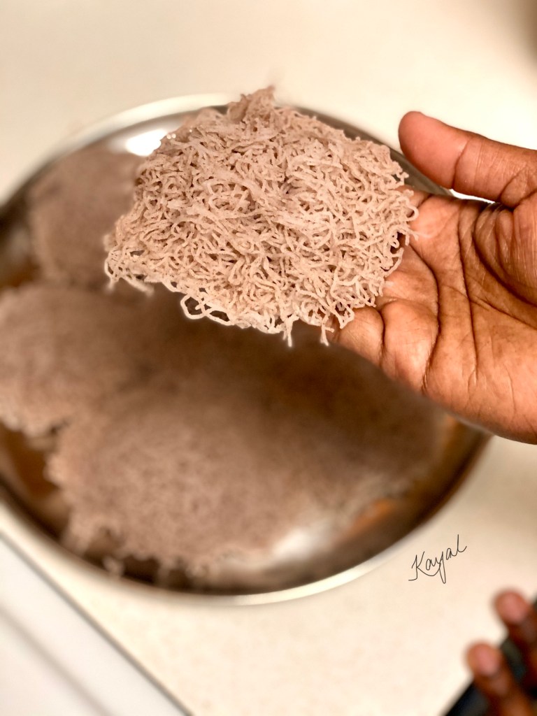 The idiyappam flour recipe pictures was shot by my mother-in-law in Tuticorin. The idiyappam making procedure picture was shot by me in the US.