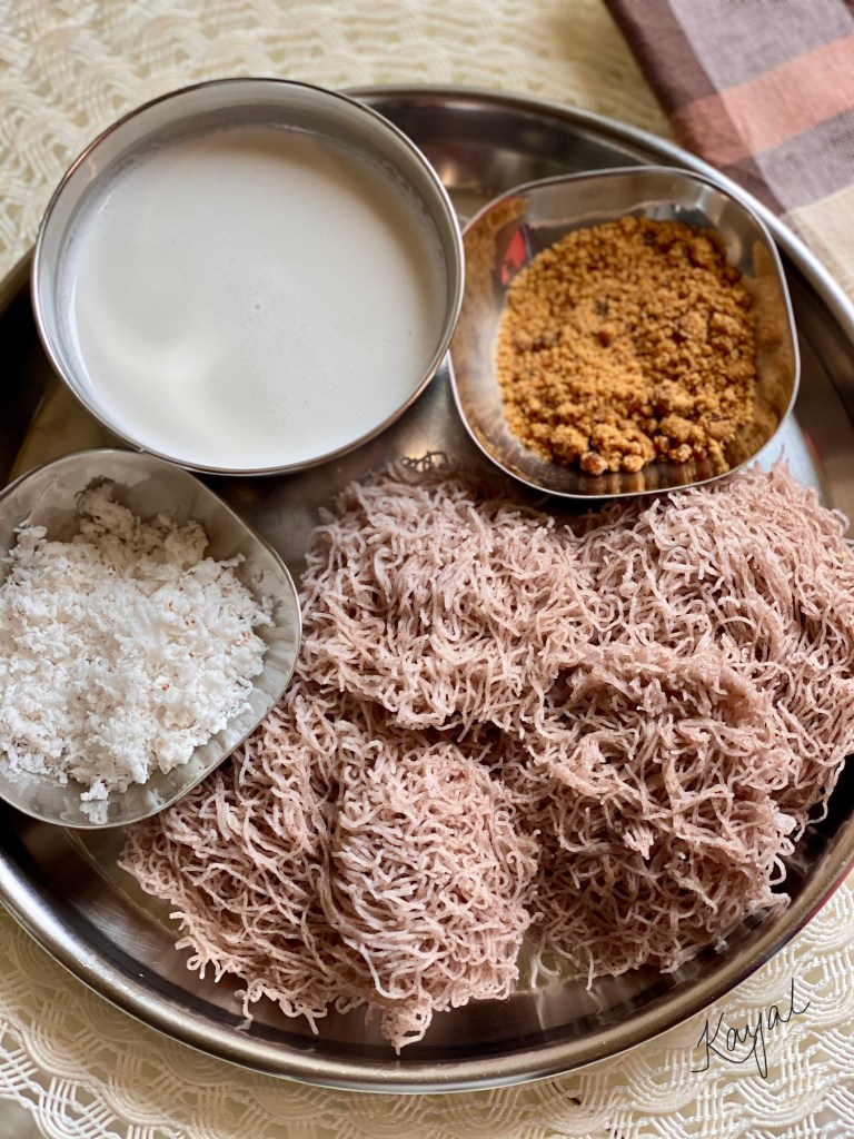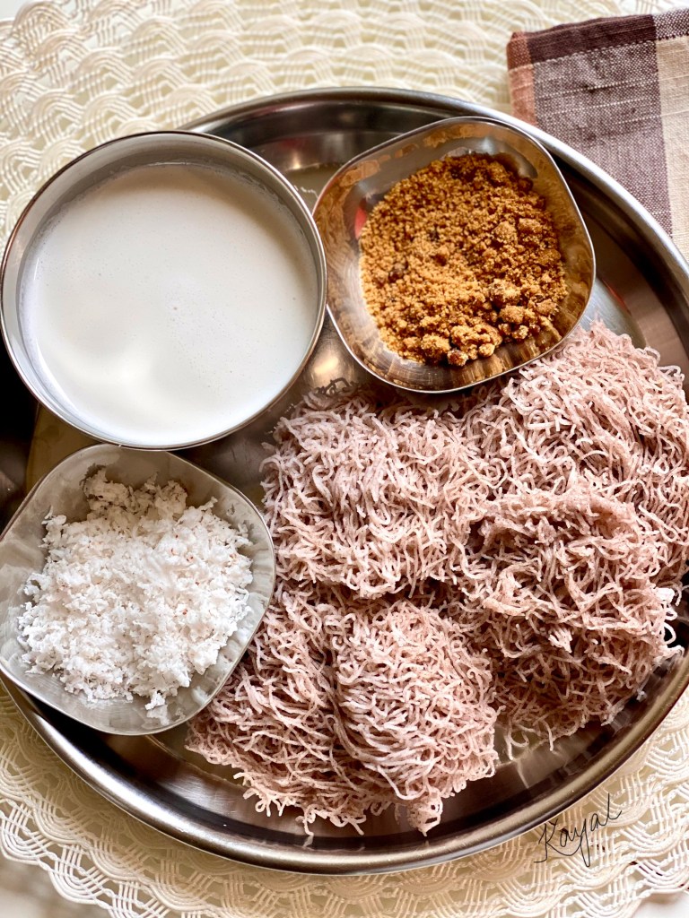 Samba pacharisi idiyappam / Red rice string hoppers is a healthy steamed dish made using Samba pacharisi / Red raw rice. This particular rice consists of so many health benefits. It is a traditional rice variety found in Tamil Nadu. It is unpolished. It is healthier than the white rice. It aids in good digestion, increases immunity and strengthens muscles.