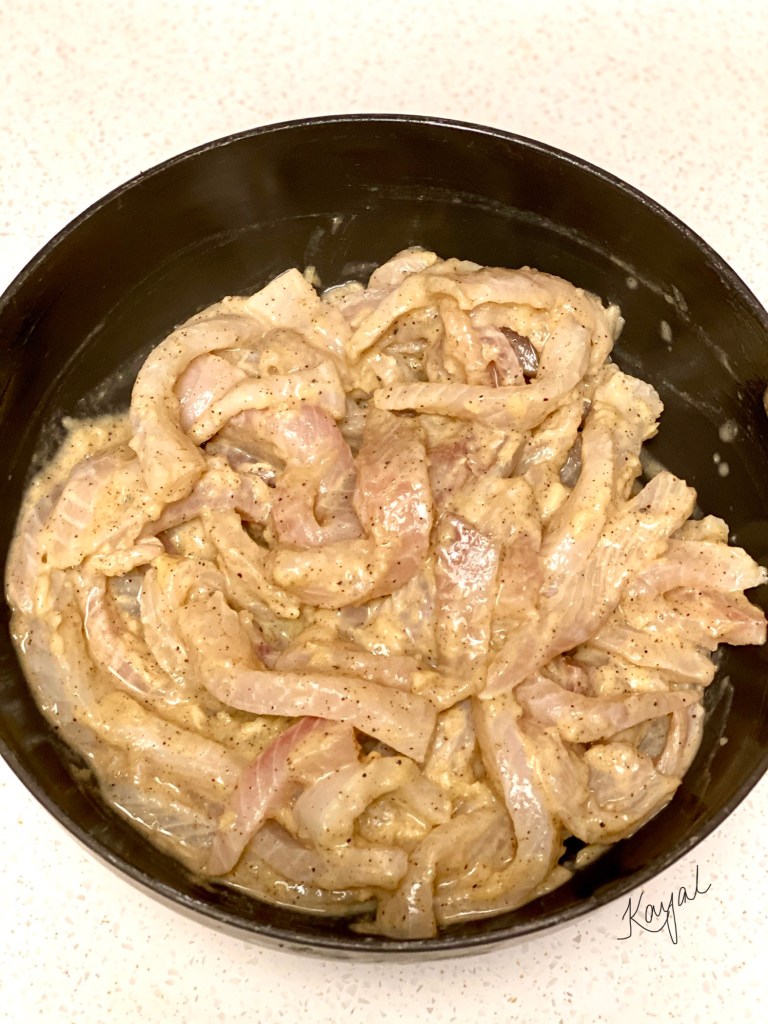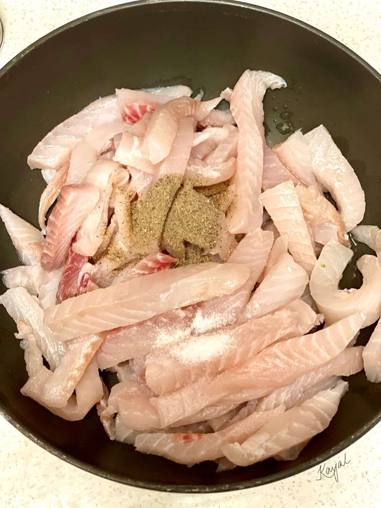 - 1st Marination – Marinate the fish with lemon juice, salt and pepper and set aside for 15 mins.