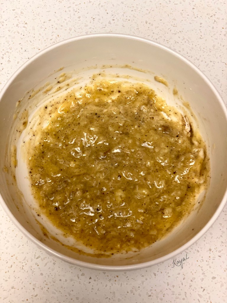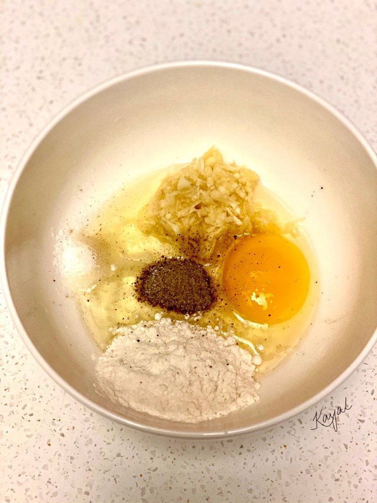 - 2nd Marination – In a bowl, combine grated garlic, egg, flour, salt and pepper and make it to a thick paste.