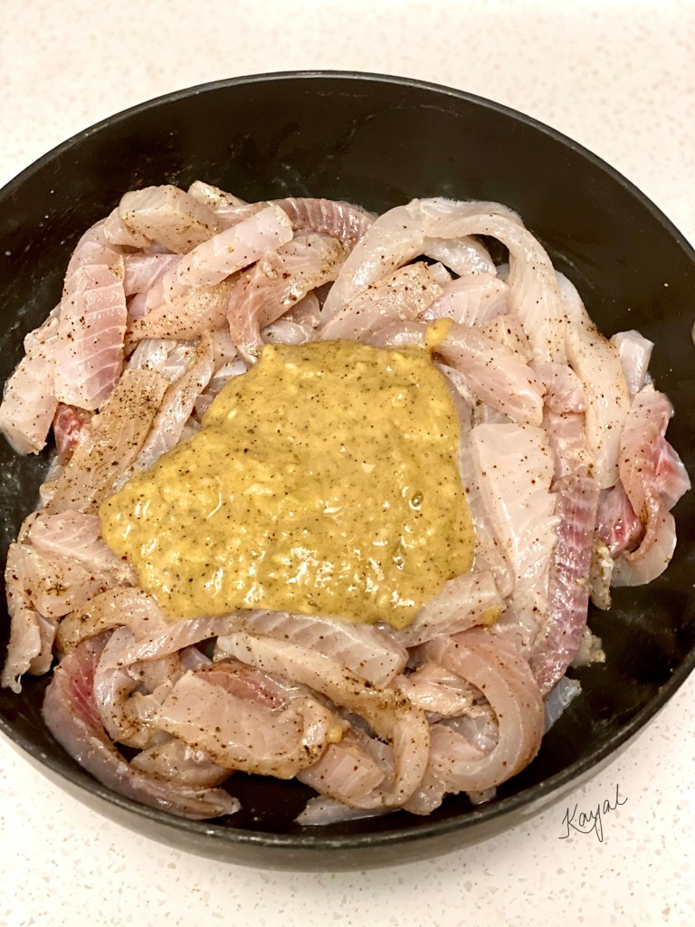 - Add the 2nd marination paste to the marinated fish. Mix everything well. Marinate this for 30 mins.