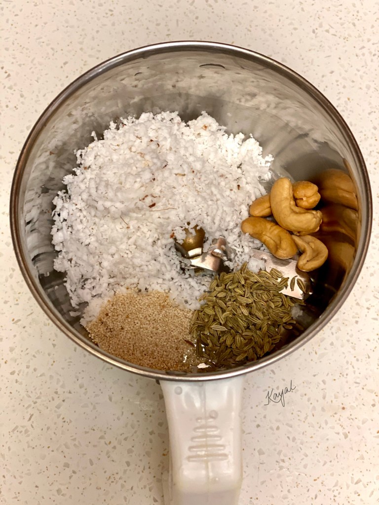 - Meanwhile, grind the ingredients under “to grind to a fine paste” and set aside.