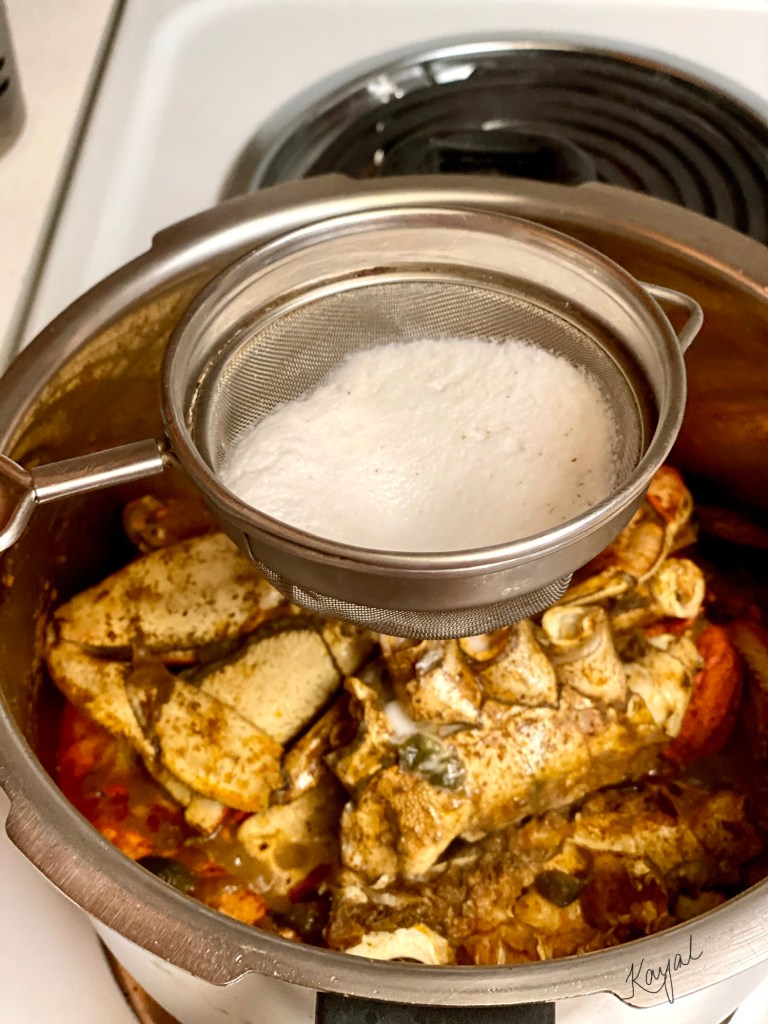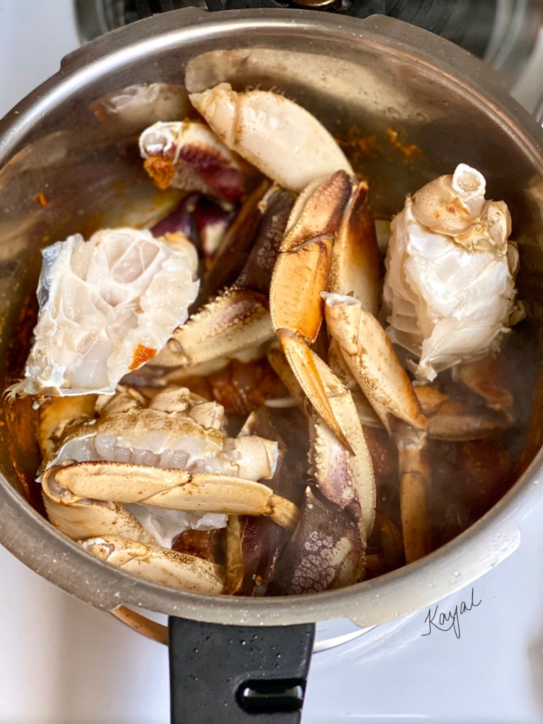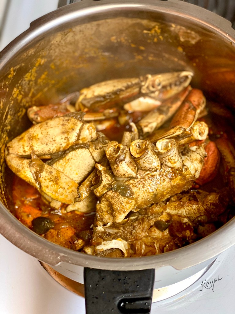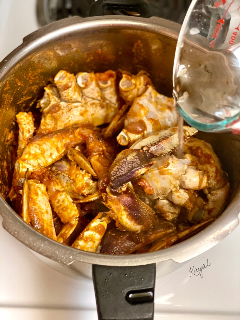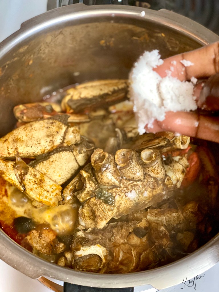 - Add in the crab and mix well till the gravy has coated the crab.