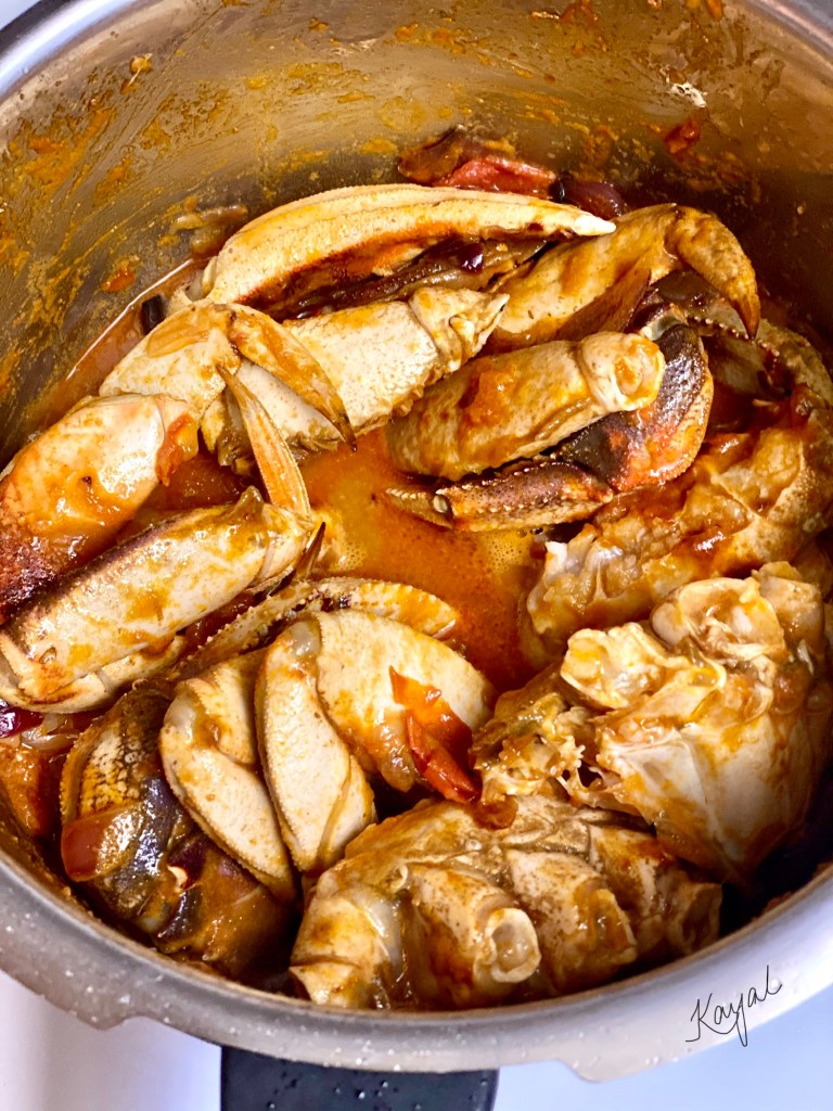 - After adding the crab, cook for the mentioned time. This ensures that the masala goes till the flesh and adds more flavor to the flesh.