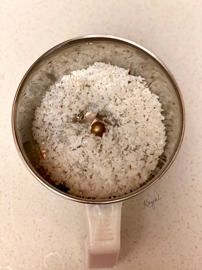 - Once the sound settles on its own, open the cooker and add in coconut milk extracted by grinding 1/4 cup coconut + 1/2 cup warm water.