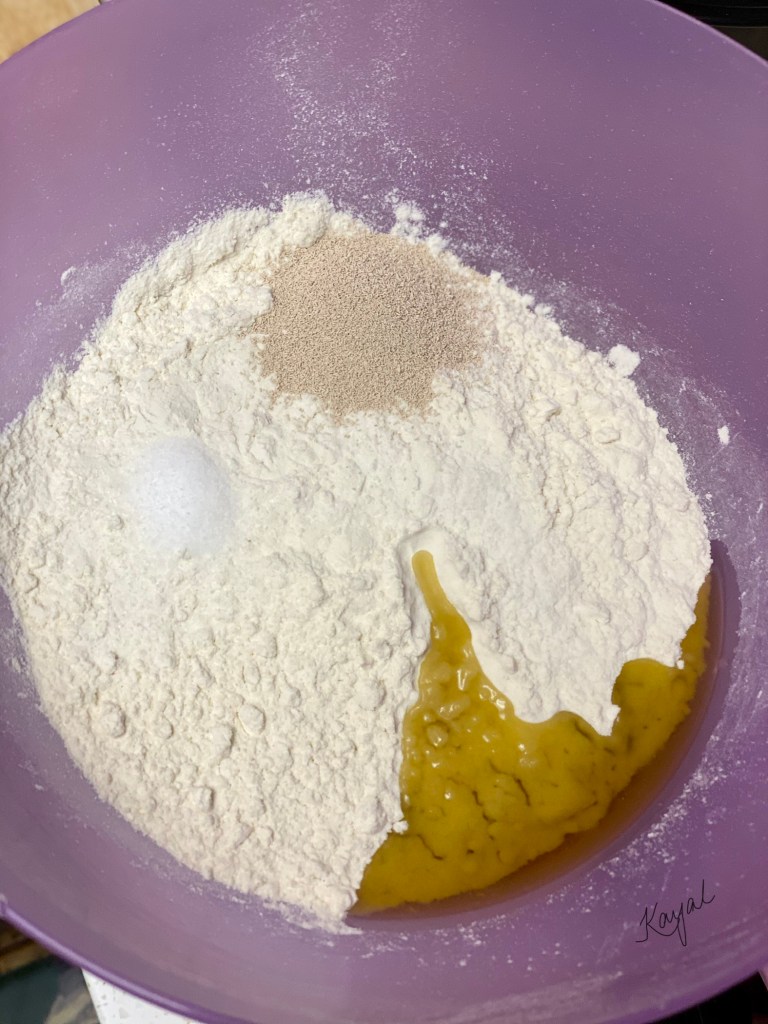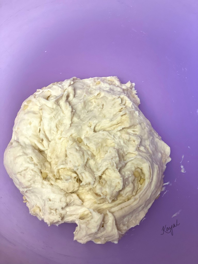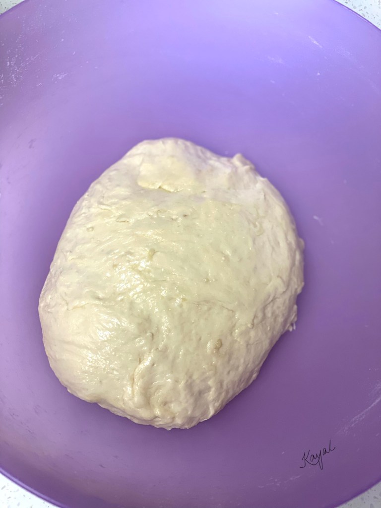 - The dough will be sticky. At this stage add in very less extra flour and some olive oil if you are not able to handle the stickiness.