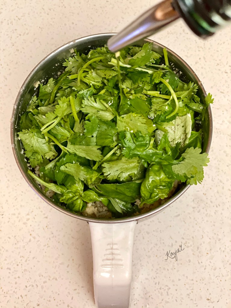 - Basil + Coriander leaves – 1 cup