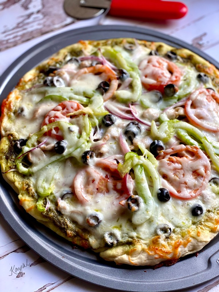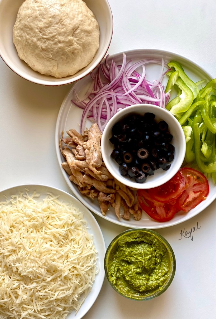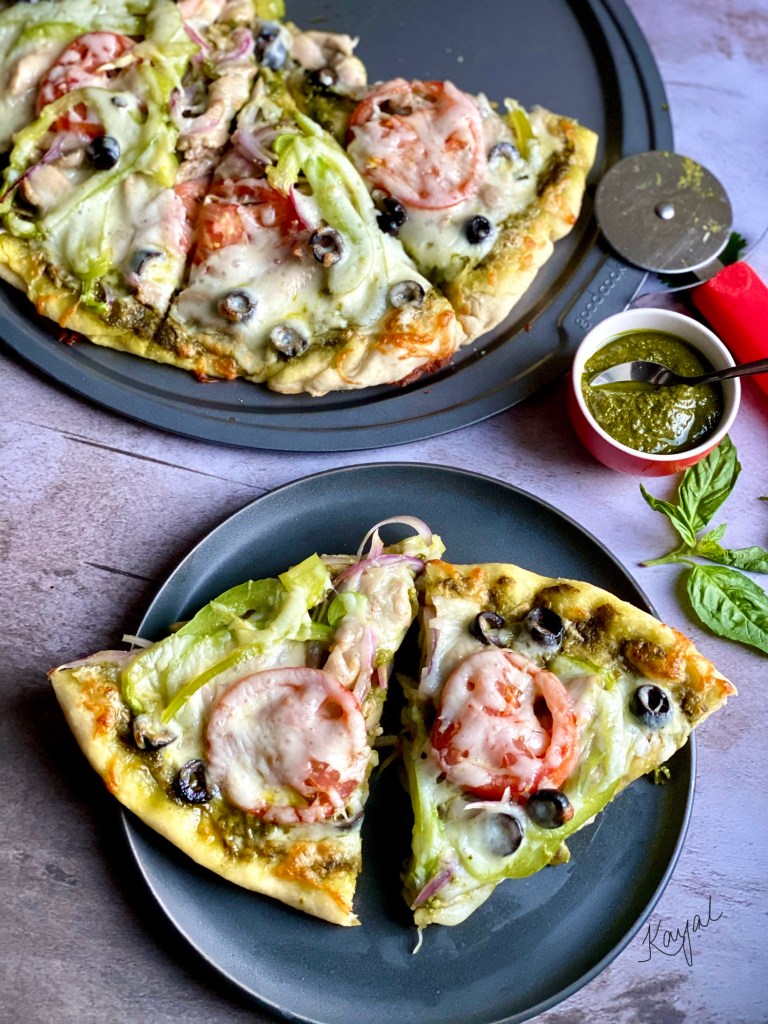 Pizza is a family favorite dish. Friday pizza nights are always super relaxing for me! Homemade pizza is easy to make and tastes great if the right ingredients are put together. We love the regular marinara / red sauce pizza, but Pesto Pizza had a unique flavor. It was new to us when we moved to the US. I had my first ever “Pesto Pizza” from MOD Pizza and we loved the flavor, which was very refreshing and fragrant.