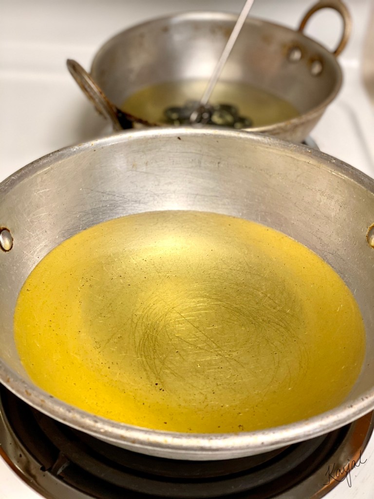 - Keeping 2 kadai with oil method was introduced to me by my mother-in-law to save time. You can just dip the mould every time in the bigger kadai, then dip in the batter and make murukku.