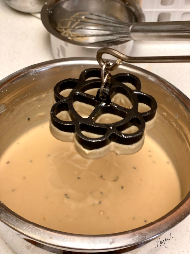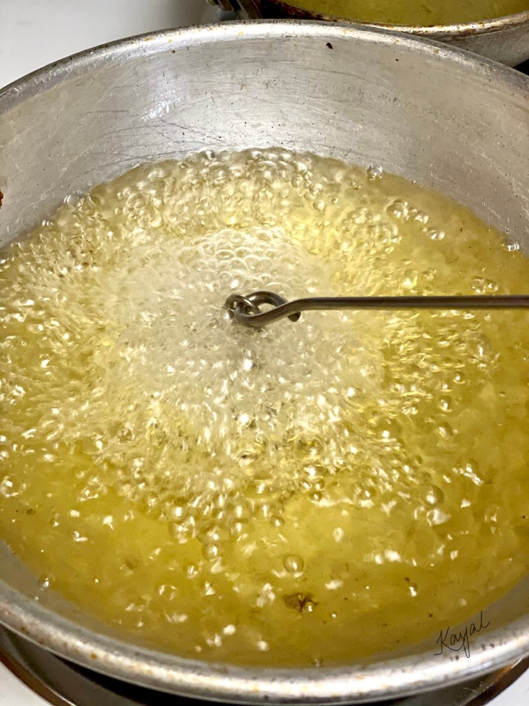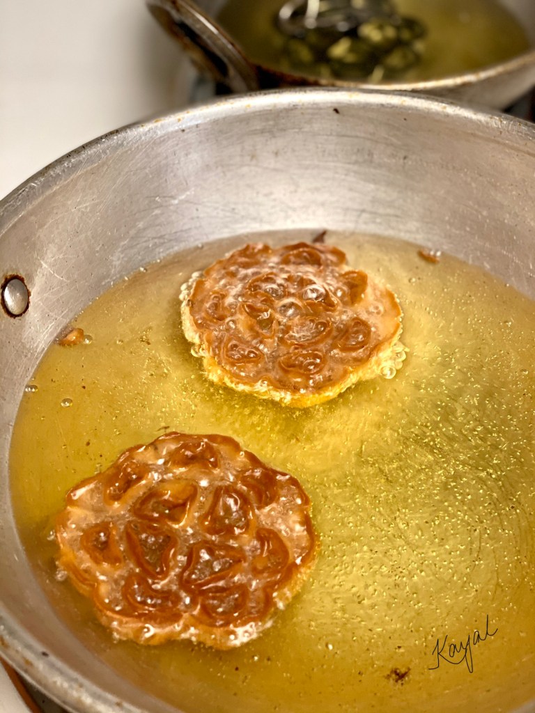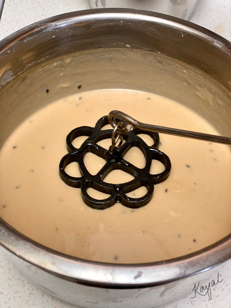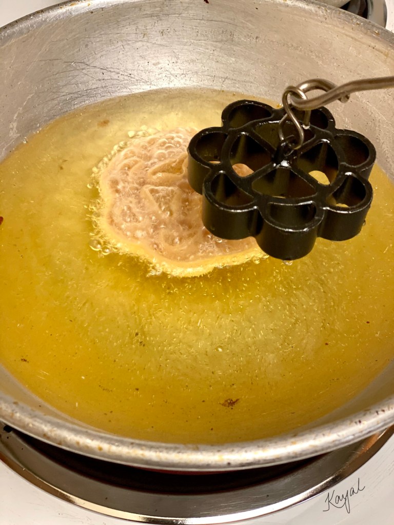 - The batter should stick properly to the mould, so it is important that the mould is dipped well in hot oil.