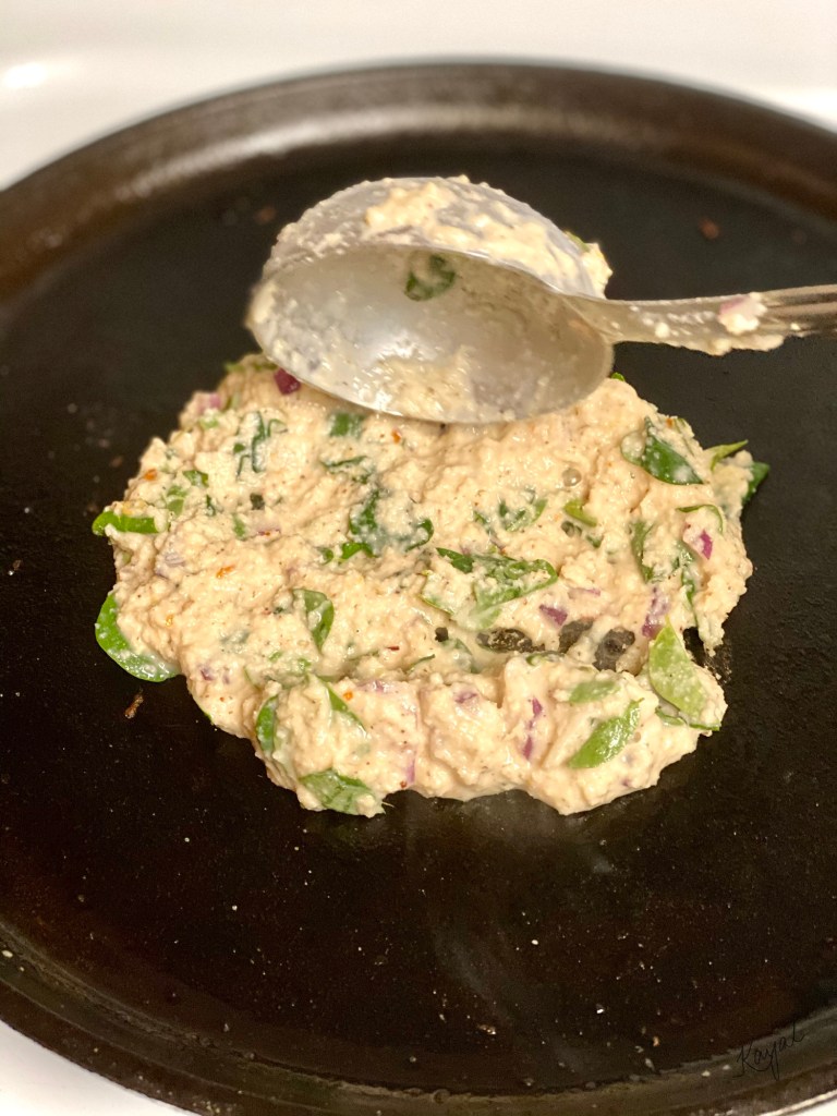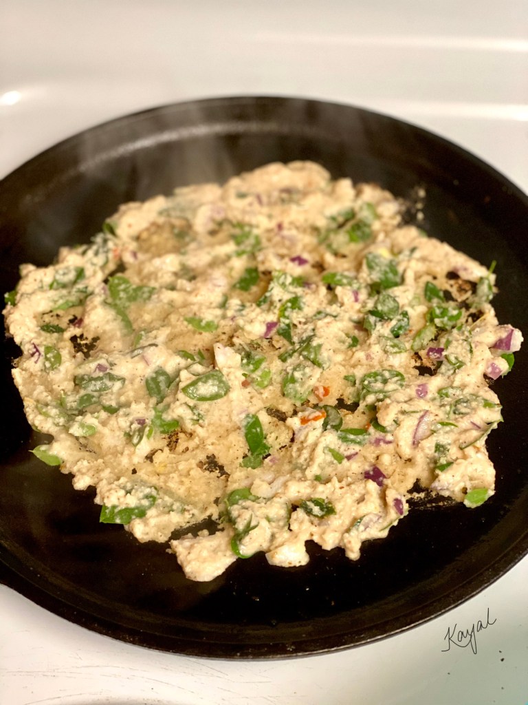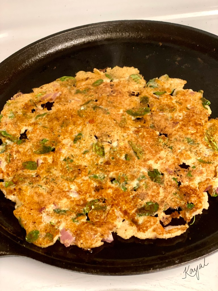 - Flip the adai and cook on the opposite side for 2 mins.