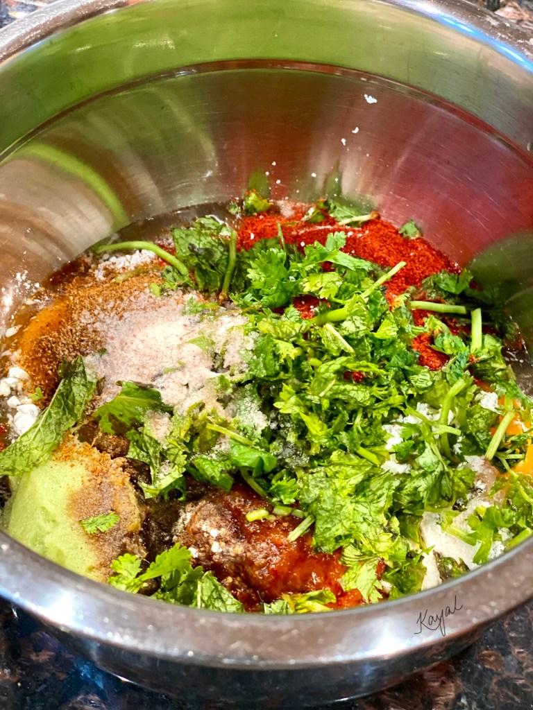 - Kashmiri chilli powder – 3 tsp (Add regular chilli powder for a more spicy flavor)